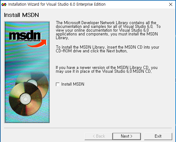 재부팅하고 나면, 다음과 같은 팝업이 출력되는데 Install MSDN 체크 해제 해주시고 넥스트 및 중간에 나오는 Register도 체크해제 해주세요