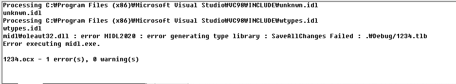 midl\oleaut32.dll : error MIDL2020 : error generating type library : SaveAllChanges Failed : .\Debug\1234.tlb